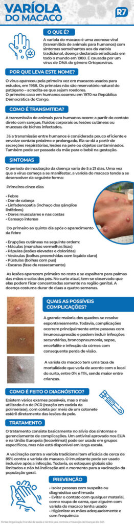 “Ainda não temos casos de monkeypox de transmissão interna, o nosso principal fator de risco é a pessoa que viajou para fora, ou quem não viajou, mas teve contato com alguém com a suspeita da doença e que tenha viajado. Então, acho que a conscientização da população sobre o problema, sobre o risco de ter caso e a procura por assistência o mais rápido possível para que as medidas de contingências sejam adotadas adequadamente”, finaliza o infectologista.