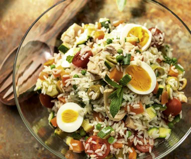 - Acrescente o arroz frio e misture.