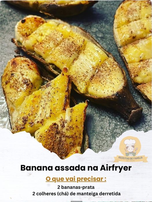 Coloque as bananas, com a parte cortada para cima, na AirFryer, uma ao lado da outra; feche a gaveta e deixe assar por 15 minutos — nem precisa virar na metade do tempo.