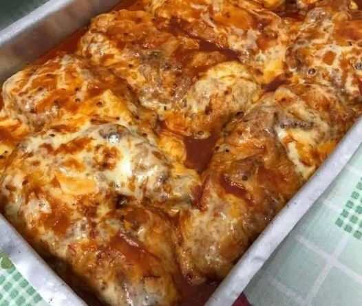 Acomode os filés em um refratário regado com um pouco de molho. Coloque fatias de muçarela sobre os filés e regue com o molho. Espalhe o queijo parmesão ralado em cima.