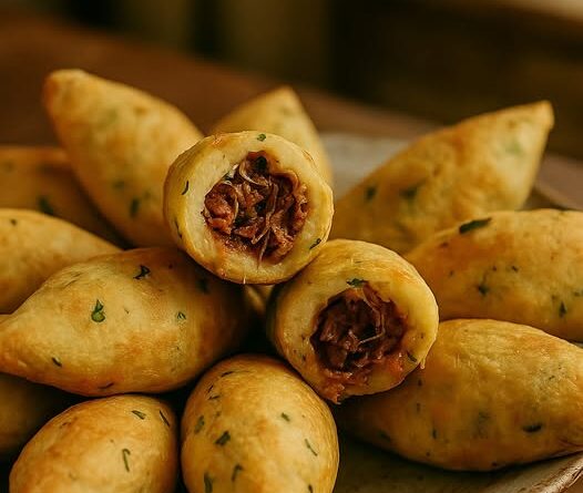 Faça bolinhas, abra, recheie, feche e modele no formato desejado.