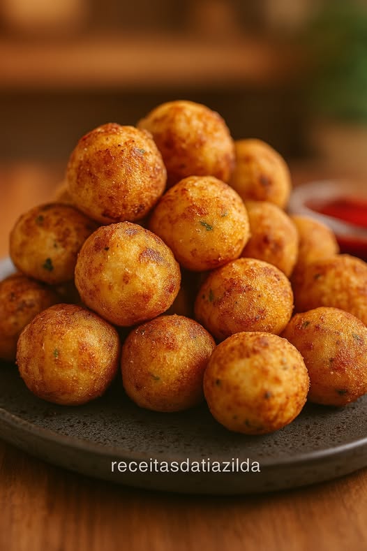 2 Batatas inglesas Coloque para cozinhar depois amasse e as coloque na Geladeira. Depois coloque uma colher de sopa de farinha de arroz, misture bem até virar uma massa. Pegue a metade de uma calabresa e rale junte com 100 gramas de mussarela. Unte suas mãos com azeite e pegue um pouquinho de massa e abra com as mãos. Recheie com a calabresa e o Queijo se quiser orégano e feche as BOLINHAS DE CALABRESA. passe no ovo e Depois na farinha de arroz, depois em 2 ovos batidos agora na farinha de rosca. Pincele um pouquinho de azeite e asse em forno pré-aquecido à 181 graus por aproximadamente 15 minutos