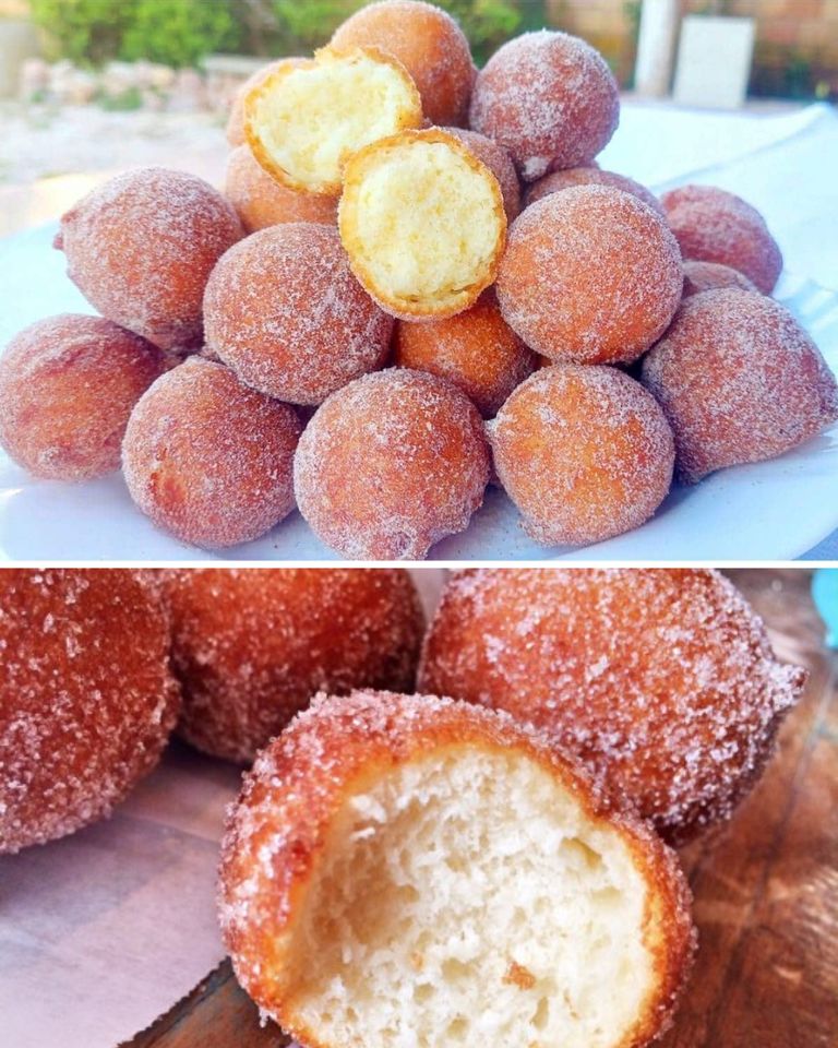 - Retire o excesso de óleo em papel toalha e passe os bolinhos no açúcar com canela.