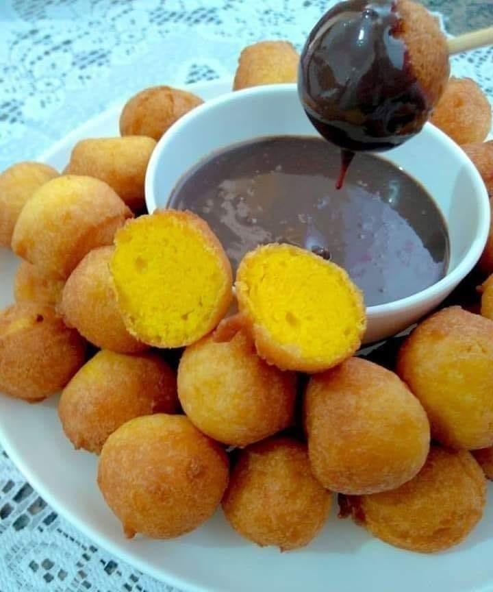 Bate tudo no liquidificador exceto o trigo e o fermento… Depois transfere pra um recipiente e acrescenta o trigo e o fermento, mistura bem e leva pra fritar pingando a massa no óleo com a colher