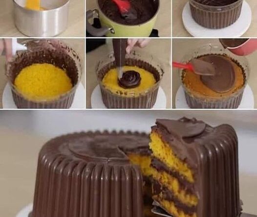 Despeje um pouco do brigadeiro no fundo da casquinha e espalhe bem, em seguida coloque uma camada de bolo e aperte levemente para ela fixar bem e não quebrar sua casquinha. Umedeça o bolo com uma calda da sua preferência e faça uma camada generosa com brigadeiro espalhando bem. Assente uma nova camada de bolo, umedeça, e faça uma camada de brigadeiro. Vamos finalizar com a ultima camada de bolo e agora lacraremos o nosso bolo bombom de cenoura com o restante do chocolate fracionado. Derrame o chocolate fracionado derretido por cima do bolo fechando o fundo espalhando bem, em seguida leve para geladeira e deixe por aproximadamente 45 minutos. Descole com cuidado e desenforme.