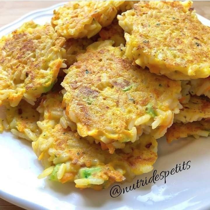 Numa travessa bata os ovos, tempere, adicione o arroz, o queijo ralado, os legumes, a farinha e o amido de milho. Pode variar os legumes e o tipo do queijo também