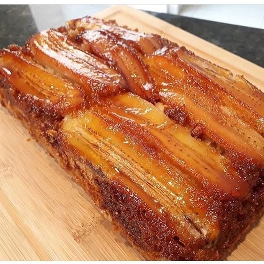 Não exagere nas bananas, pois elas podem pesar o seu bolo! Esse caramelo que vai untar a fôrma e banana vai soltar sua água fazendo com que esse camelo derreta.