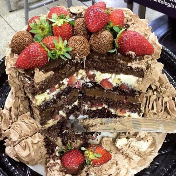 Corte o bolo ao meio, regue com metade da calda e espalhe o recheio. Coloque a outra parte da massa e regue com a calda restante.