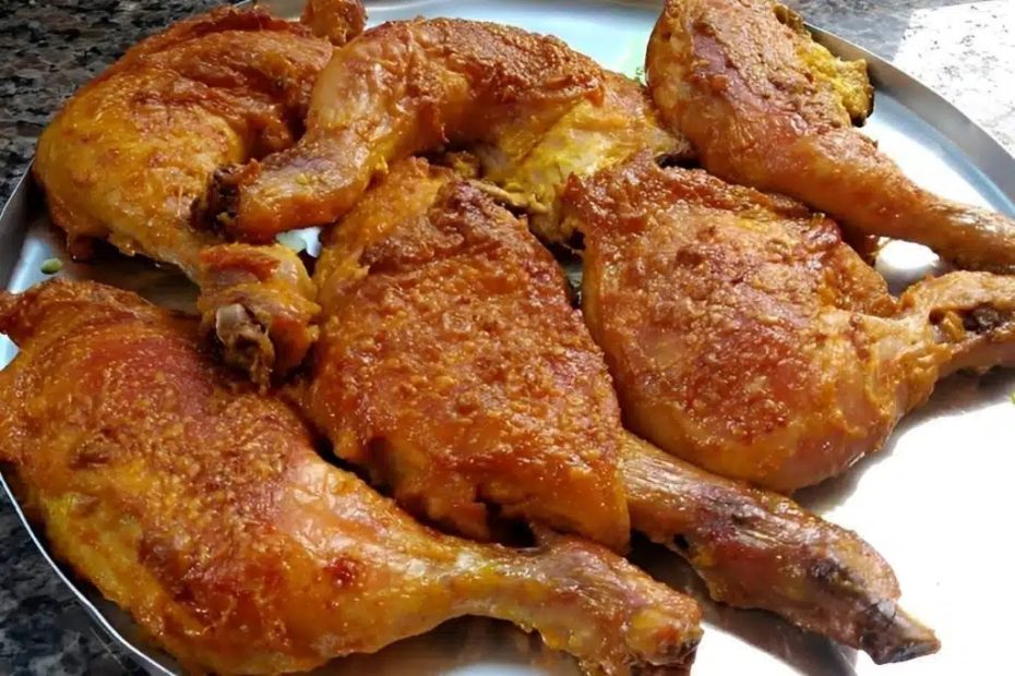 - Em uma tigela, tempere as coxas e sobrecoxas de frango com alho, colorau, cúrcuma, ervas finas, pimenta-do-reino e sal.