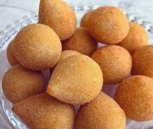 Abra pequenas porções de massa nas mãos, coloque porções de recheio e modele coxinhas. Passe pelos ovos batidos e em seguida na farinha de rosca. Em uma frigideira, frite, aos poucos, em óleo quente até dourar. Escorra sobre papel absorvente e sirva.