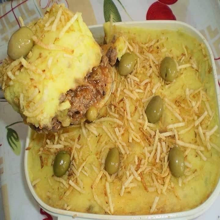 Coloque a carne num refratário, cubra com o creme, distribua a mussarela, polvilhe mais parmesão ralado. leve ao forno para gratinar por uns 15 minutos + ou – depois distribua azeitonas, batata palha e sirva !