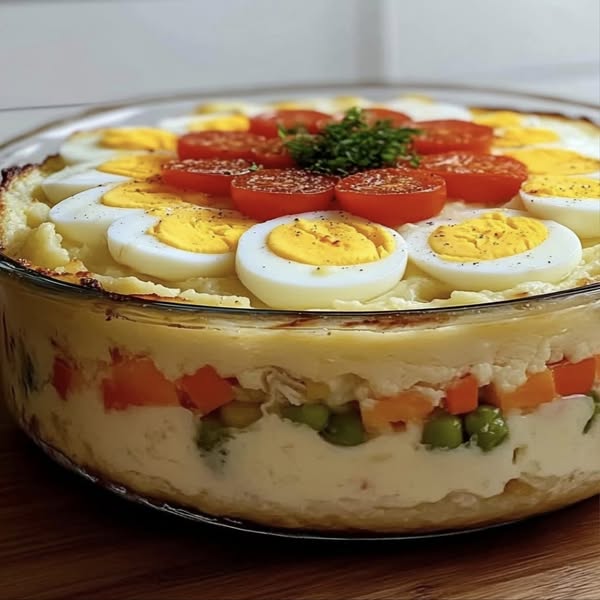 Decore com rodelas de ovo cozido e tomatinhos cereja por cima. Sirva quente e aproveite!