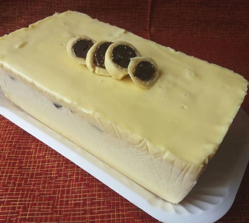 Retire do congelador e “crave” os bombons no sentido do comprimento da forma, bem juntinhos cubra então com a outra parte da massa reservada e volte ao freezer até firmar completamente.