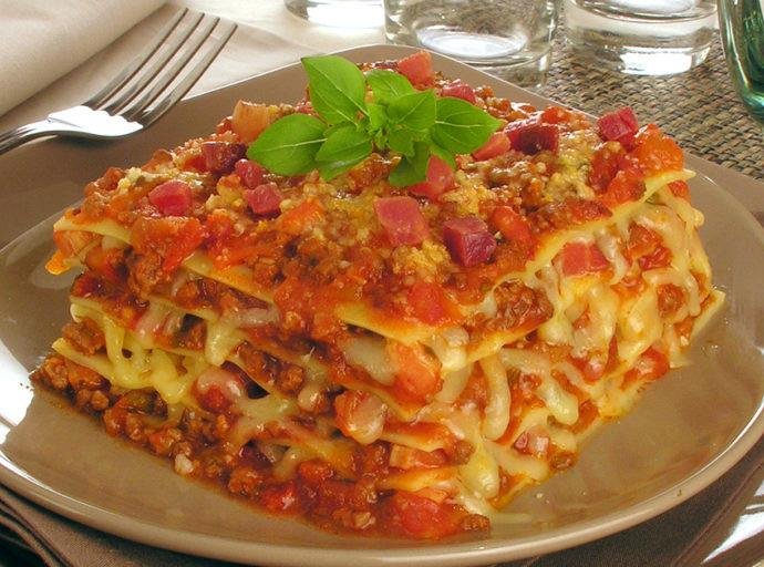 Aproveite sua deliciosa lasanha à bolonhesa!”