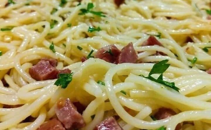 Quando o macarrão estiver “al dente” escorra bem e coloque aos poucos na frigideira