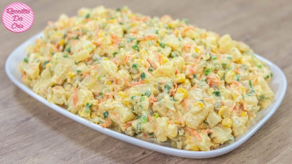 - Cozinhe a mandioca e depois coloque os ingredientes picados, as latas de ervilha e milho verde sem a água.
