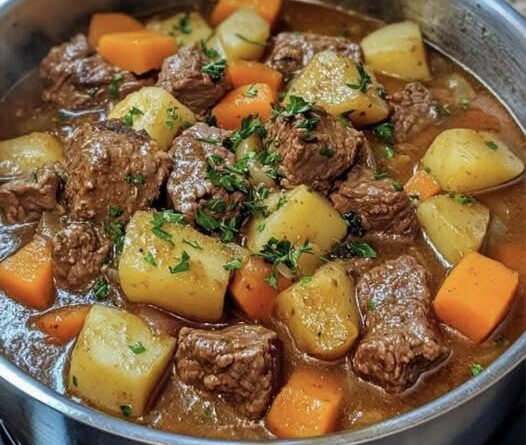 Servir e decorar: Retire a folha de louro. Sirva o guisado em tigelas e decore com salsa fresca picada.