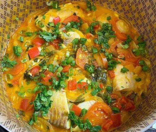Tempere 500g de filé de tilápia com sal, pimenta-do-reino e suco de limão. Em uma panela, coloque um fio de azeite, faça uma camada de cebola, uma de tomate, acomode o peixe temperado, uma camada de pimentão (pode ser picado ou fatiado), repita a camada de cebola e tomate, espelhe cebolinha e coentro picados.