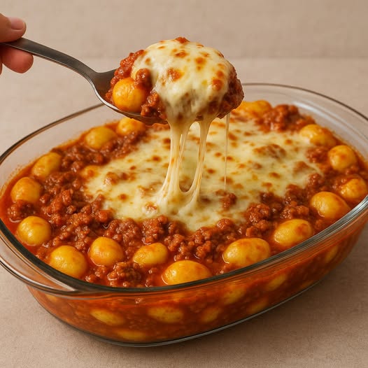 Em uma travessa de vidro, coloque os nhoques cozidos.
