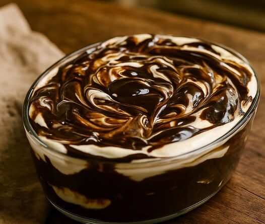 Coloque colheradas de ganache por cima e misture levemente para criar um efeito mesclado.