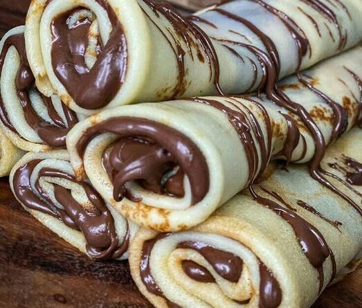 4. Recheie com creme de avelã, enrole e finalize com mais por cima.