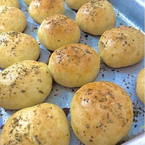 Amasse essa massa até que fique bem homogênea e solta das mãos. Coloque essa massa para descansar por 1 hora. Unte uma forma com manteiga, faça pãezinhos e coloque um pouco distante um do outro passe a gema misturada com o leite por cima deles e salpique orégano.