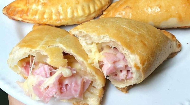 Então depois, coloque um pouco de recheio no meio do círculo da massa e feche as pontas, apertando com um garfo para a massa não abrir, coloque em uma forma.