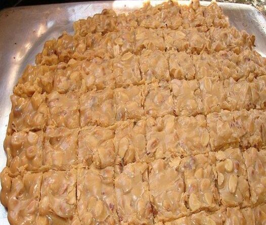 Torre o amendoim e tire a pele. Unte com manteiga ou margarina, a pedra da pia ou o fundo de uma forma com margarina ( onde você despejará o doce depois de pronto).