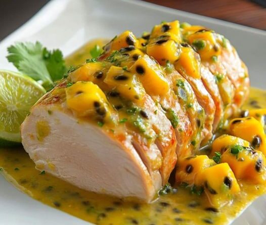 Um prato tropical suculento que combina o peru com um delicioso molho de maracujá e manga, perfeito para dar um toque exótico à sua refeição!