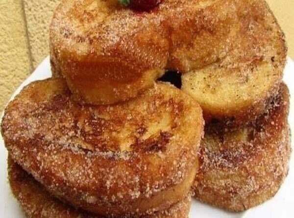 Asse em forno pré-aquecido em 200C por 15 minutos e vire as fatias e asse por mais 15 minutos. Retire do forno e polvilhe açúcar com canela.
