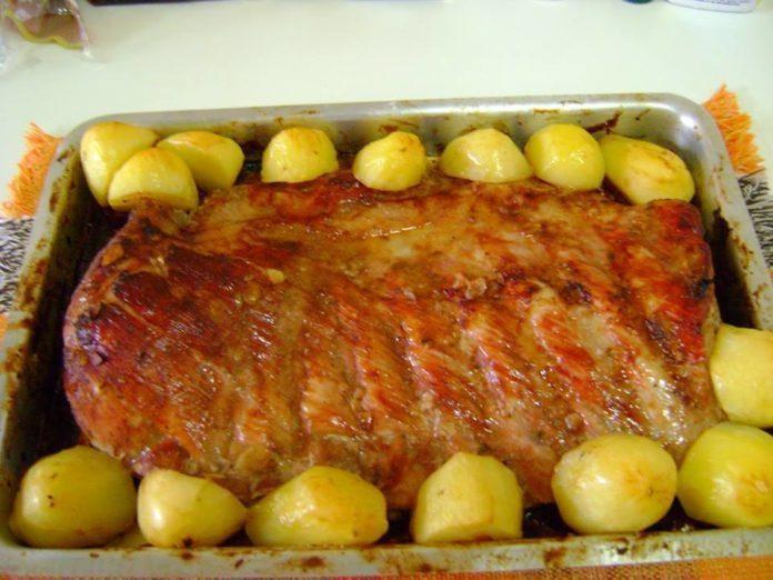 No dia seguinte coloque a costela para assar em uma assadeira, junte as batatas se preferir pingue um fio de azeite e um pouco de orégano sobre as batatas. Cubra a assadeira com papel alumínio e deixe assar por mais ou menos 1 hora depois, disso tire o papel alumínio e deixe por mais uns 20 minutos para a carne dar uma morenada.