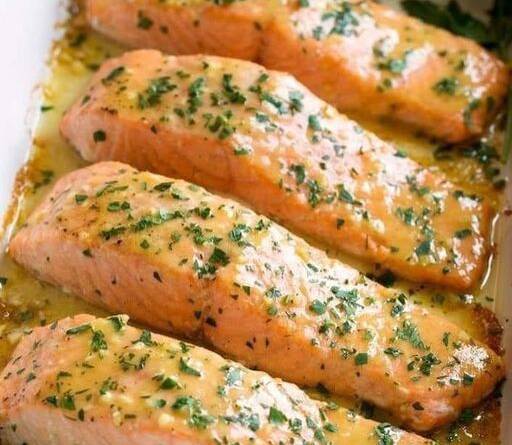 Adicione o azeite, o alho e a salsinha à frigideira e refogue, em seguida, adicione as raspas de laranja, o suco de laranja, o suco de limão e o mel. Tempere o molho com sal e pimenta a gosto e deixe ferver por 1 minuto, mexendo sempre. Retorne o salmão à panela, coloque o molho sobre o salmão e sirva.