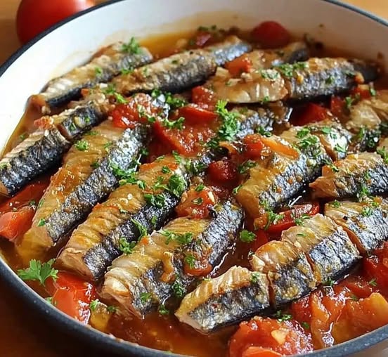 Coloque o molho de tomate sobre as sardinhas na assadeira.