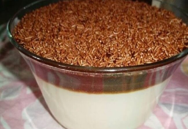 - Despeje a mistura por cima do creme branco e leva à geladeira
