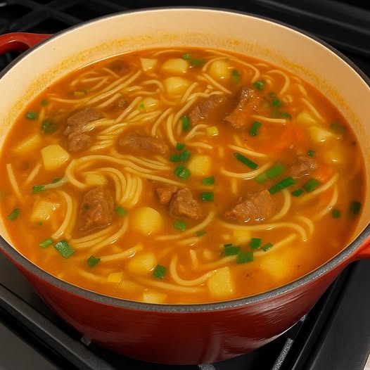 6. Adicione o macarrão e mais água se necessário, para ficar no ponto de sopa. Cozinhe até o macarrão ficar al dente.