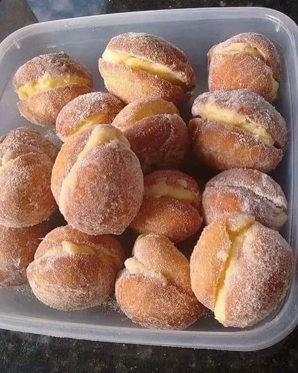 Amasse bem e deixe descansar por 30 minutos. Depois disso faça bolinhas, e deixe crescer por mais 30 minutos Frite em óleo bem quente. Abra a massa, recheie e polvilhe com o açúcar e canela.
