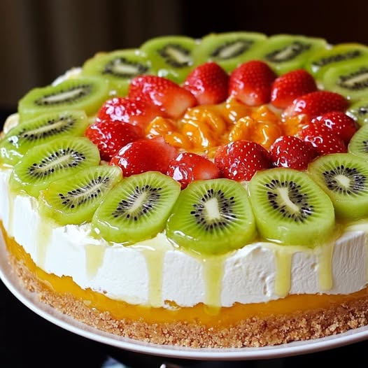 Decore a torta com fatias de kiwi, morangos frescos e polpa de maracujá para um toque tropical irresistível.