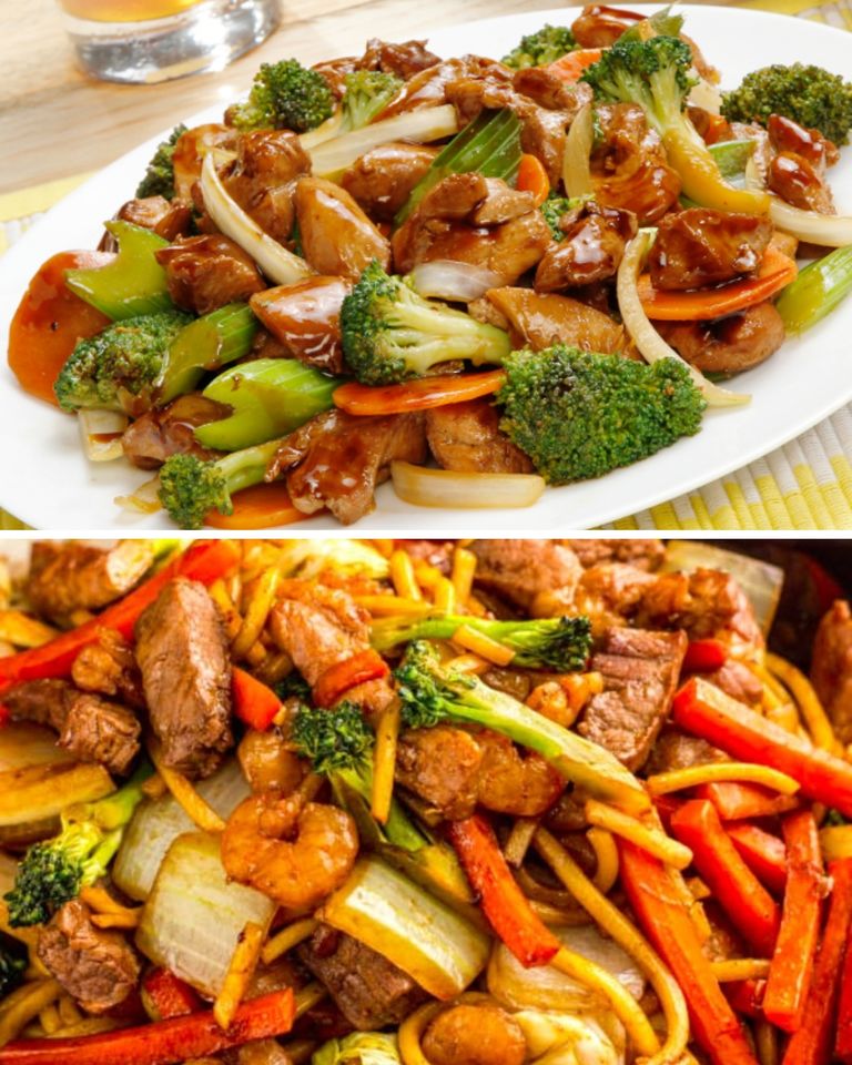 - Em uma panela bem quente, dispor o óleo de gergelim e refogar a cebola, a cenoura, os pimentões, o brócolis e o repolho roxo. Reservar.