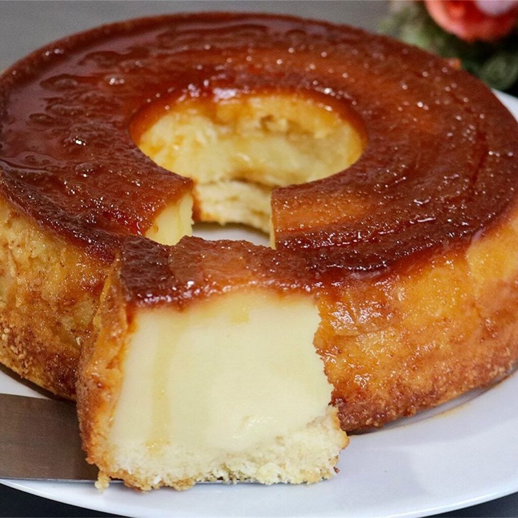 Despeje em uma forma com 20 cm de diâmetro untada e leve ao forno, preaquecido, em temperatura média, por 30 minutos ou até ficar bem dourado. Desenforme morno e sirva frio.