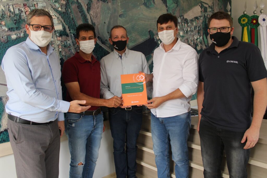 Na manhã desta sexta-feira, 05, os representantes da Cresol, Rui Andre Steffens – Diretor Superintendente, Afrânio Dalcin – Presidente Cresol Rio Grande do Sul e Jean Carlos Guidini – Gerente Agência Charrua, fizeram uma visita ao Prefeito Valdésio Roque Della Betta e ao Vice-Prefeito Gerso José Roncaglio com a finalidade de apresentar o Relatório de Sustentabilidade 2020.