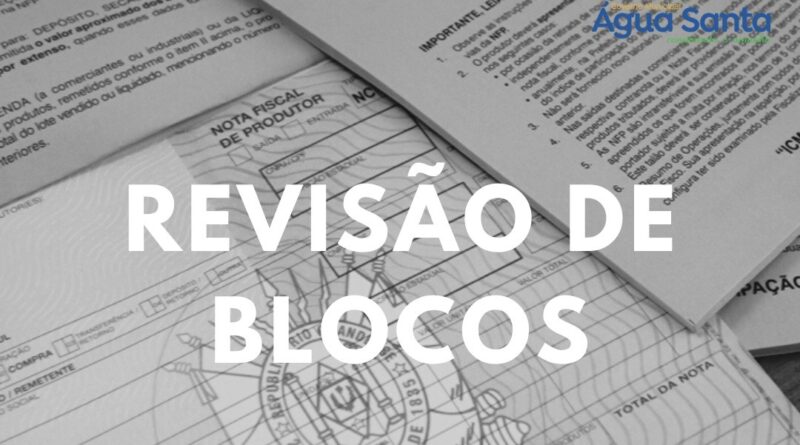 Revisão de Blocos em Água Santa será de 09 de fevereiro a 15 de março