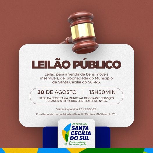 Visitação pública: de 22 a 29 de agosto, em dias úteis, das 8h às 11h30min e das 13h às 17h.