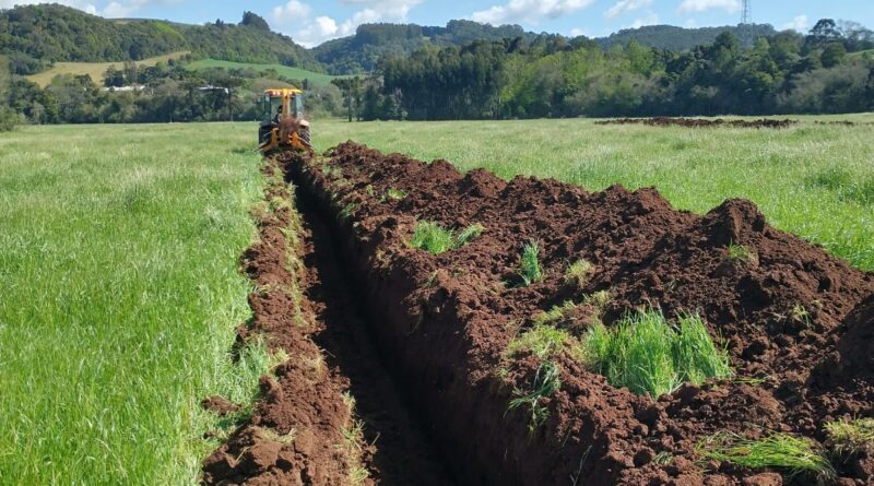 Na última semana a Secretaria da Agricultura e Meio Ambiente de Santa Cecília do Sul esteve realizando vários serviços como terraplanagens e aberturas de fossas. Dando destaque ao trabalho na abertura de valas para irrigação na Propriedade de Roberto e Gilberto Felini onde serão realizados mais 11,9 hectares de irrigação, totalizando 25,3 hectares irrigados de área.