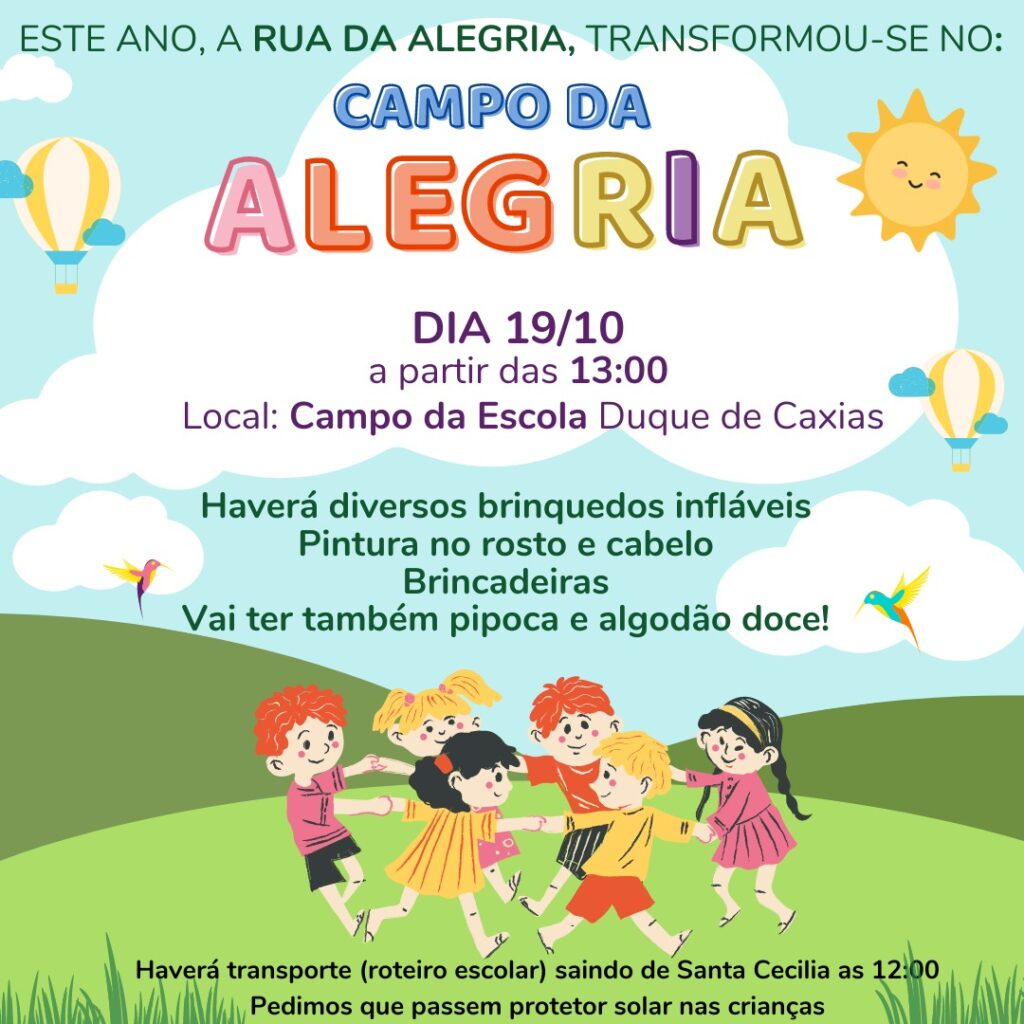O Campo da Escola Duque de Caxias de Santa Cecília do Sul receberá o evento “Campo da Alegria”.