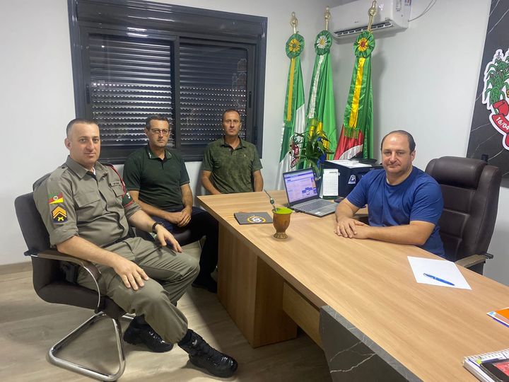 Na manhã do dia 26 de Janeiro, o Prefeito João Sirineu Pelissaro, juntamente com o Vice-Prefeito Leonardo Panisson, receberam a visita do Presidente do CONSEPRO, Sr. Rodnei Girardi e do novo Comandante da Brigada Militar de Santa Cecília do Sul, Sargento Rafael Spagnol. Na oportunidade foram tratados assuntos relativos a segurança do município e região! Sargento Rafael se colocou a disposição de toda a comunidade e enfatizou que a Brigada Militar cumprirá seu papel com instituição responsável pela segurança!!