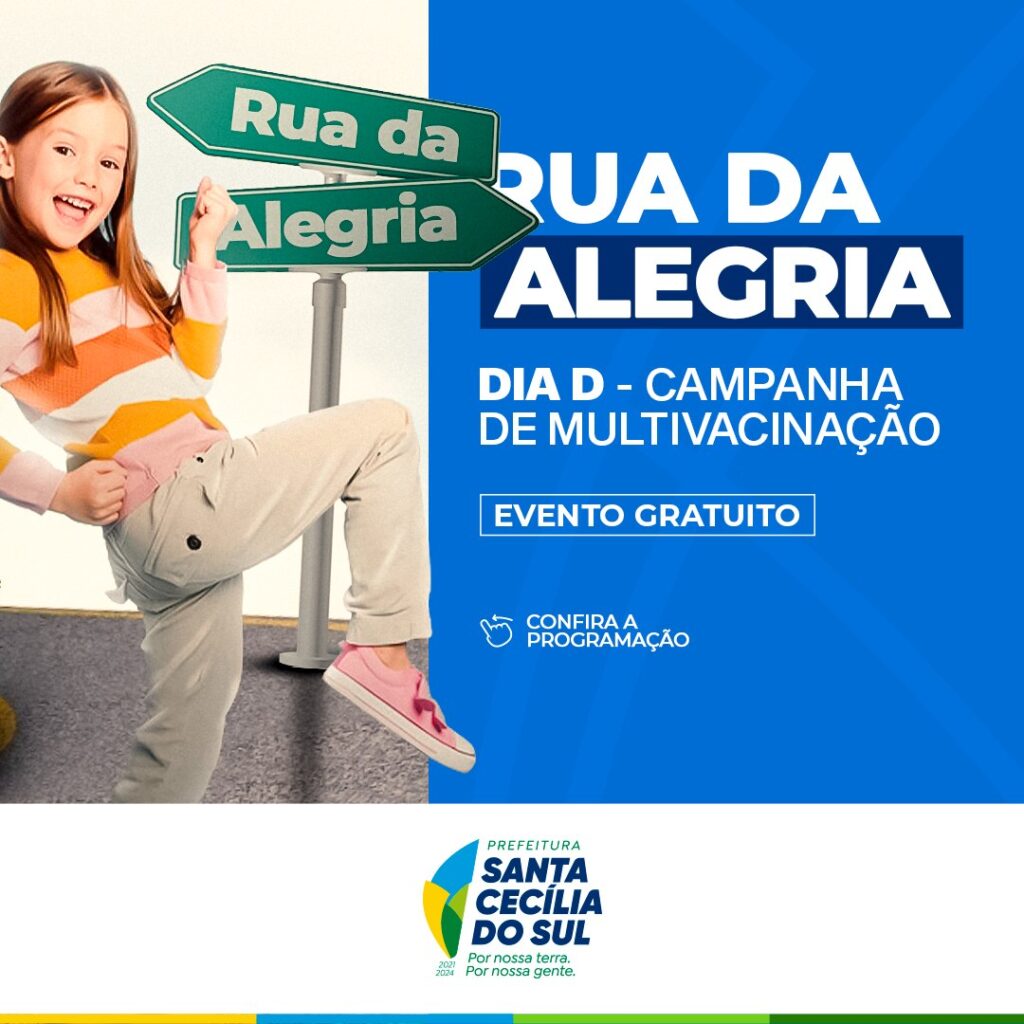 O Município de Santa Cecília do Sul realizará o Dia da Alegria, junto ao Dia “D” da Campanha de Multivacinação.