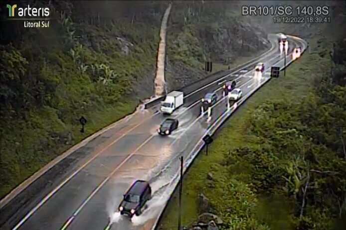 A BR 376 em Guaratuba, no Paraná, também chegou a ser interditada, mas teve as faixas liberadas no km 682 no sentido para Santa Catarina.