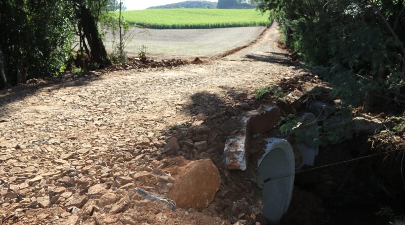 Secretaria de Obras de Água Santa substitui ponte de madeira por ponte de tubos