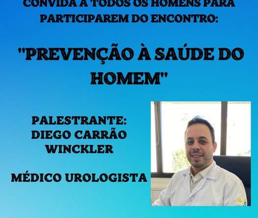 A palestra Intitulada como “PREVENÇÃO À SAÚDE DO HOMEM”, será ministrada pelo médico urologista, Diego Carrão Winckler, mestre em envelhecimento humano e professor de medicina da Universidade de Passo Fundo (UPF).