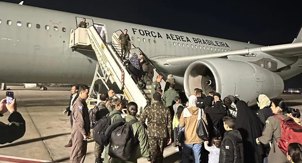 O segundo grupo de brasileiros e parentes palestinos retirados pelo governo federal da Faixa de Gaza embarcou para o Brasil neste domingo (10), no aeroporto internacional do Cairo, no Egito, em um avião da FAB (Força Aérea Brasileira).